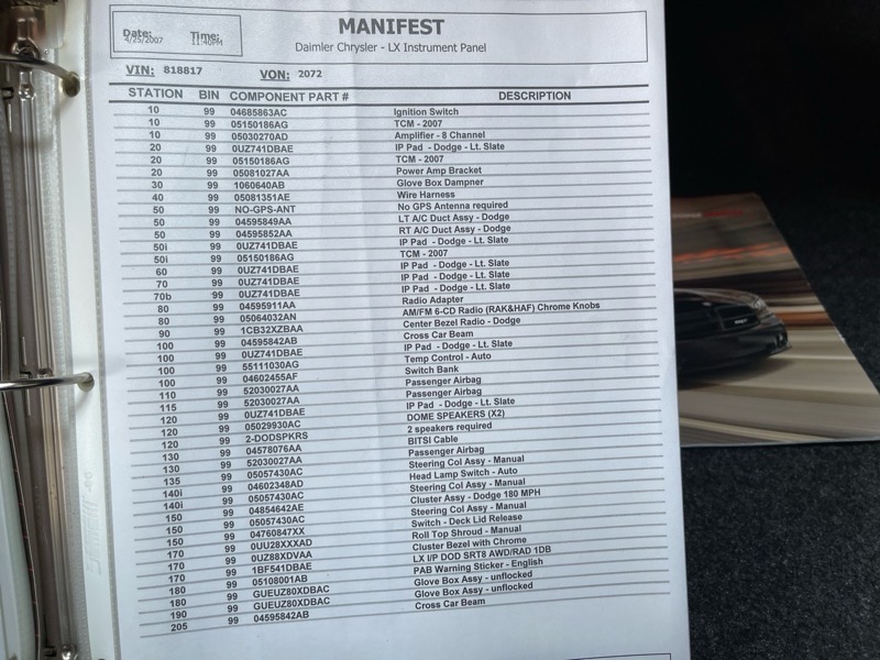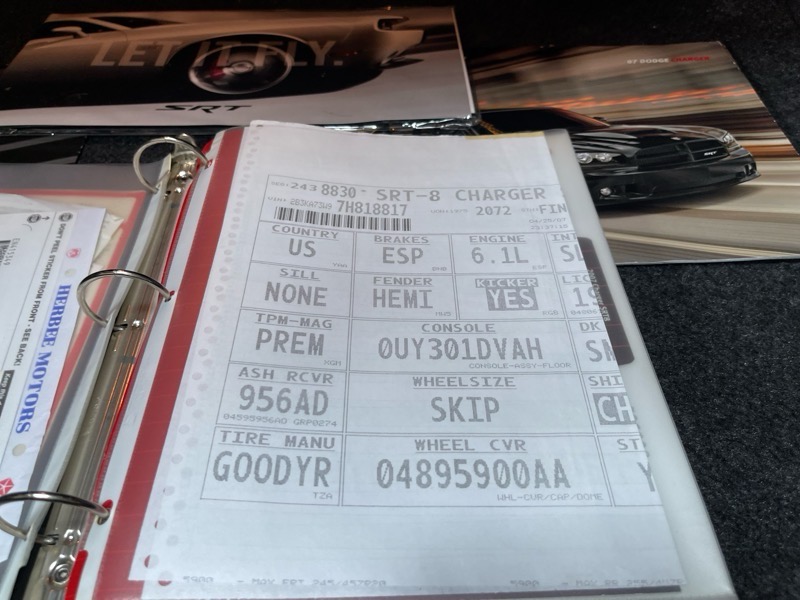 Absolutely stunning, one owner, 4,290 original mile, 2007 Dodge Charger SRT8—arguably one of the finest examples left in existence. Finished in Brilliant Black Crystal Pearl, this SRT8 is powered by the legendary 6.1L HEMI V8 pushing out 425 horsepower, delivering the raw performance that made these modern Mopars instant classics. This time capsule is equipped with desirable factory options including SRT Option Group I (which adds automatic headlamps, HID Xenon headlights, heated front seats, dual-zone automatic climate control, and premium audio) and SRT Option Group II (featuring the Kicker high-performance audio system with a subwoofer, 6-disc MP3/CD/DVD changer, and a 322-watt amp). It also includes a factory power sunroof and comes with a meticulously organized binder detailing its full ownership and maintenance history. The body, paint, interior, and undercarriage are all as-new—this is collector-grade throughout. If you're in the market for a low-mileage, unmolested example of a first-generation Charger SRT8, this one is hard to top. All books, keys, original window sticker, and documentation included. For more info, call Kevin today.