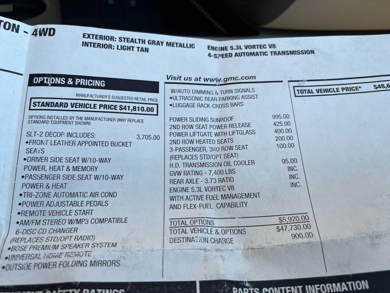 Looking for a full-size SUV with pedigree, low miles, and all the right options? This rust-free 2008 GMC Yukon XL SLT 4x4 has just 32,000 original miles and spent its entire life with one family in Utah. Finished in Stealth Gray Metallic over Light Tan leather, it’s powered by the proven 5.3L Vortec V8, 4-speed automatic, and 3.73 rear axle—smooth, strong, and ready for the long haul. The desirable SLT-2 package turns the cabin into the sweet spot of comfort and convenience with leather-appointed interior, 10-way power/heated driver seat, tri-zone automatic climate control, power-adjustable pedals, remote start, and Bose premium audio. It’s properly equipped for family duty, too: power sliding sunroof, second-row power-release seat, heated second-row seats, power liftgate, 3-passenger third row, and an HD transmission oil cooler. This eight-passenger Yukon XL is extra clean inside, outside, underneath, and exactly the kind of well-kept example that’s getting hard to find. Comes complete with all books, keys, remotes, factory floor mats, and the original window sticker. For more info, call Kevin at Mashburn Motors.
